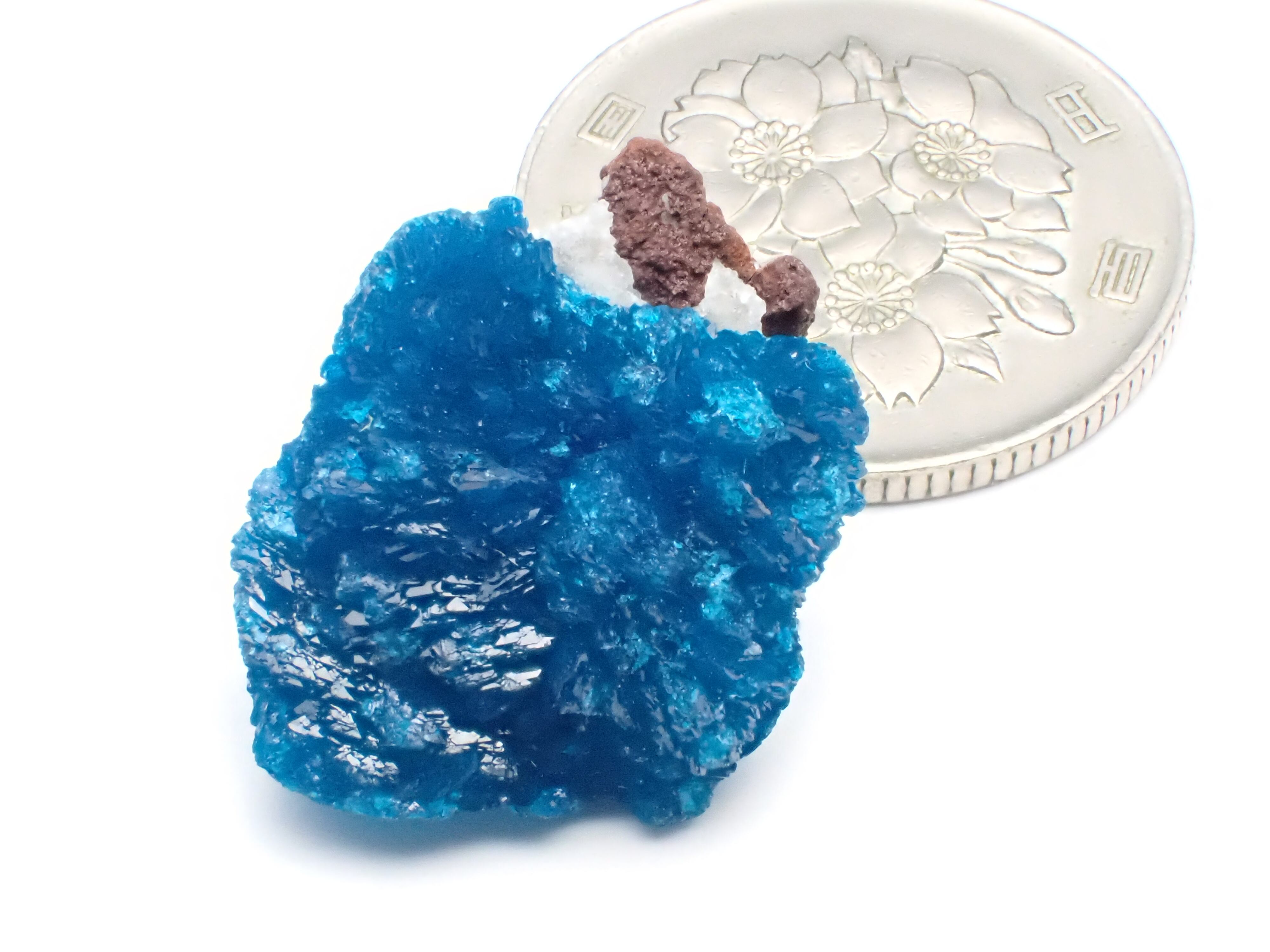 化学組成が同じカバンサイトとペンタゴナイト、結晶形が異なる同質異像の関係にあります。