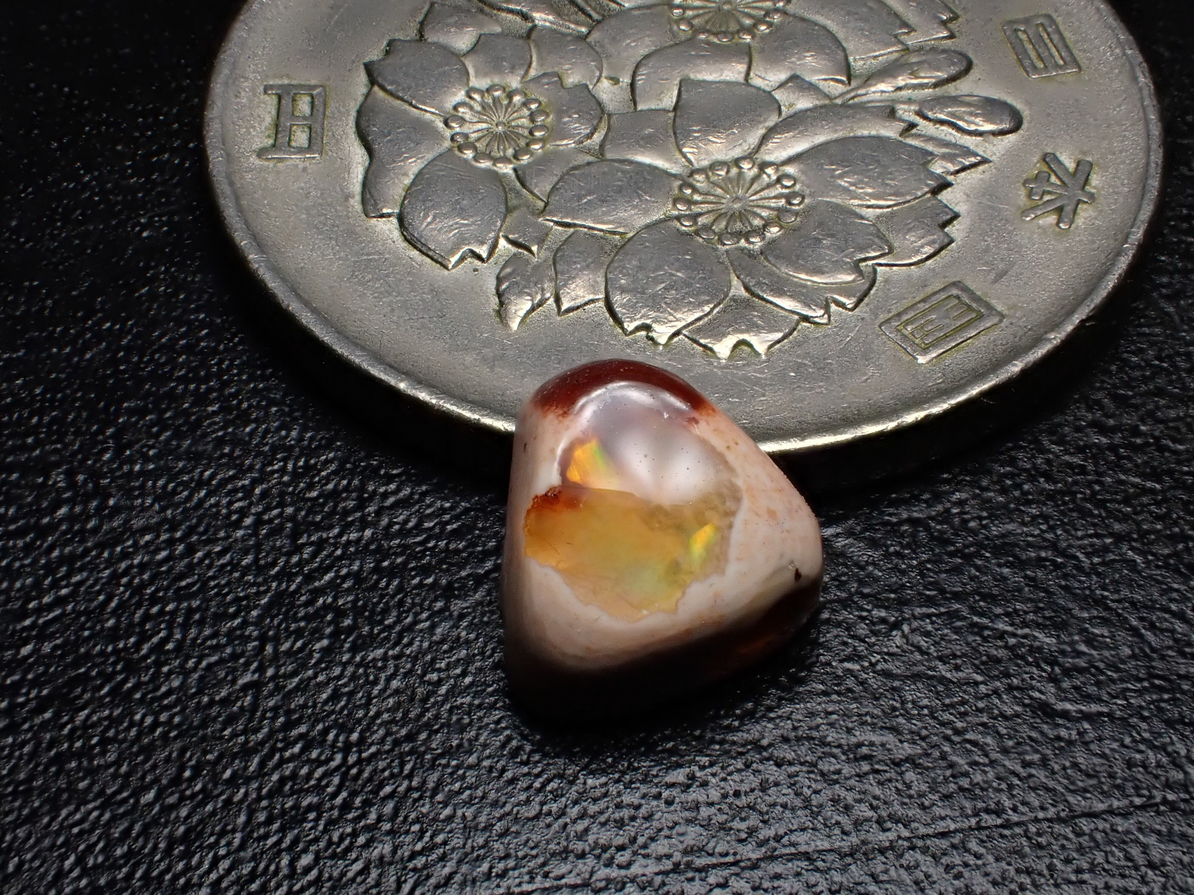 遊色を際立たせるため、黒背景にライトを近づけて撮影しています。
