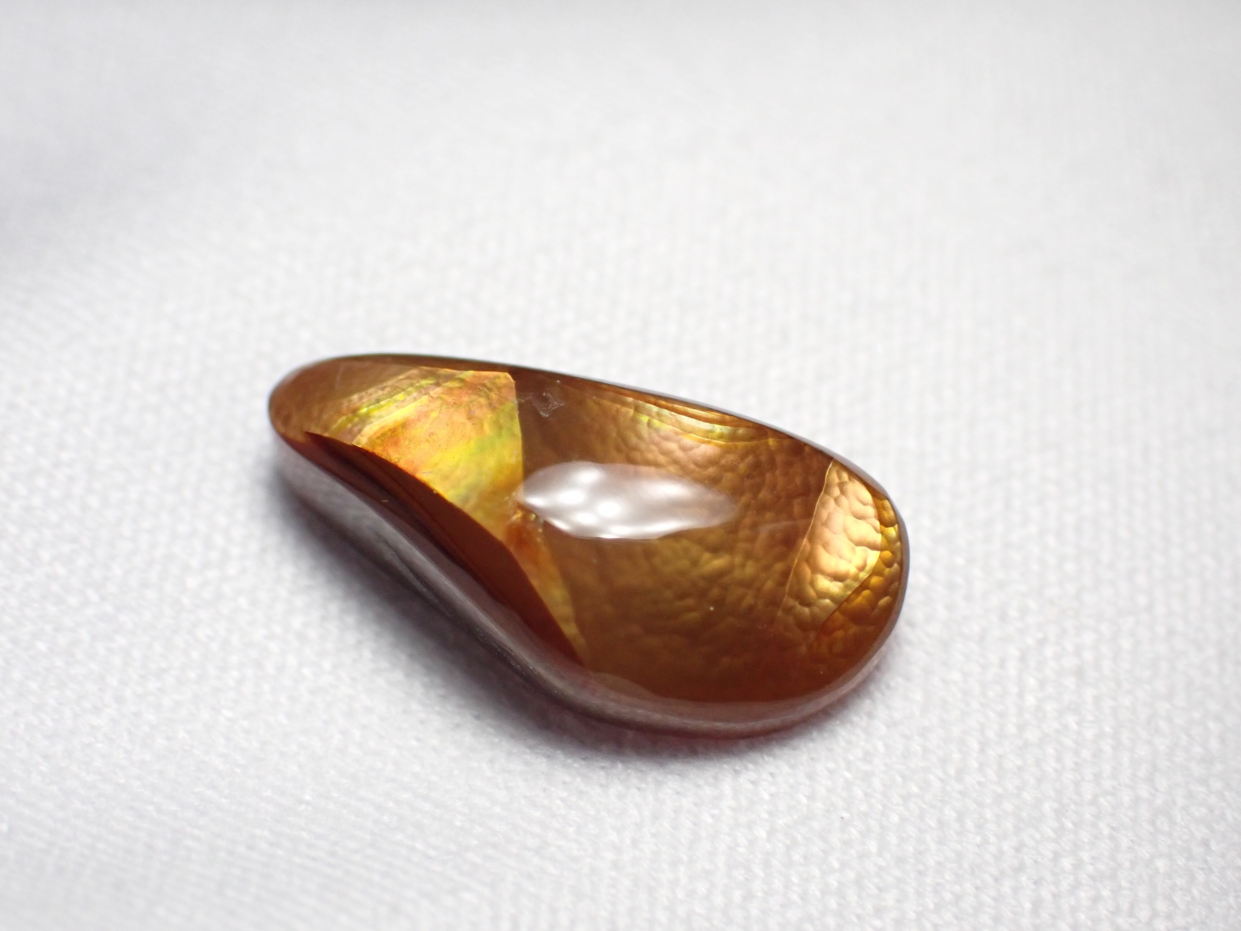 光の角度で虹色に揺らめく強いイリデッセンスを持ちます。
