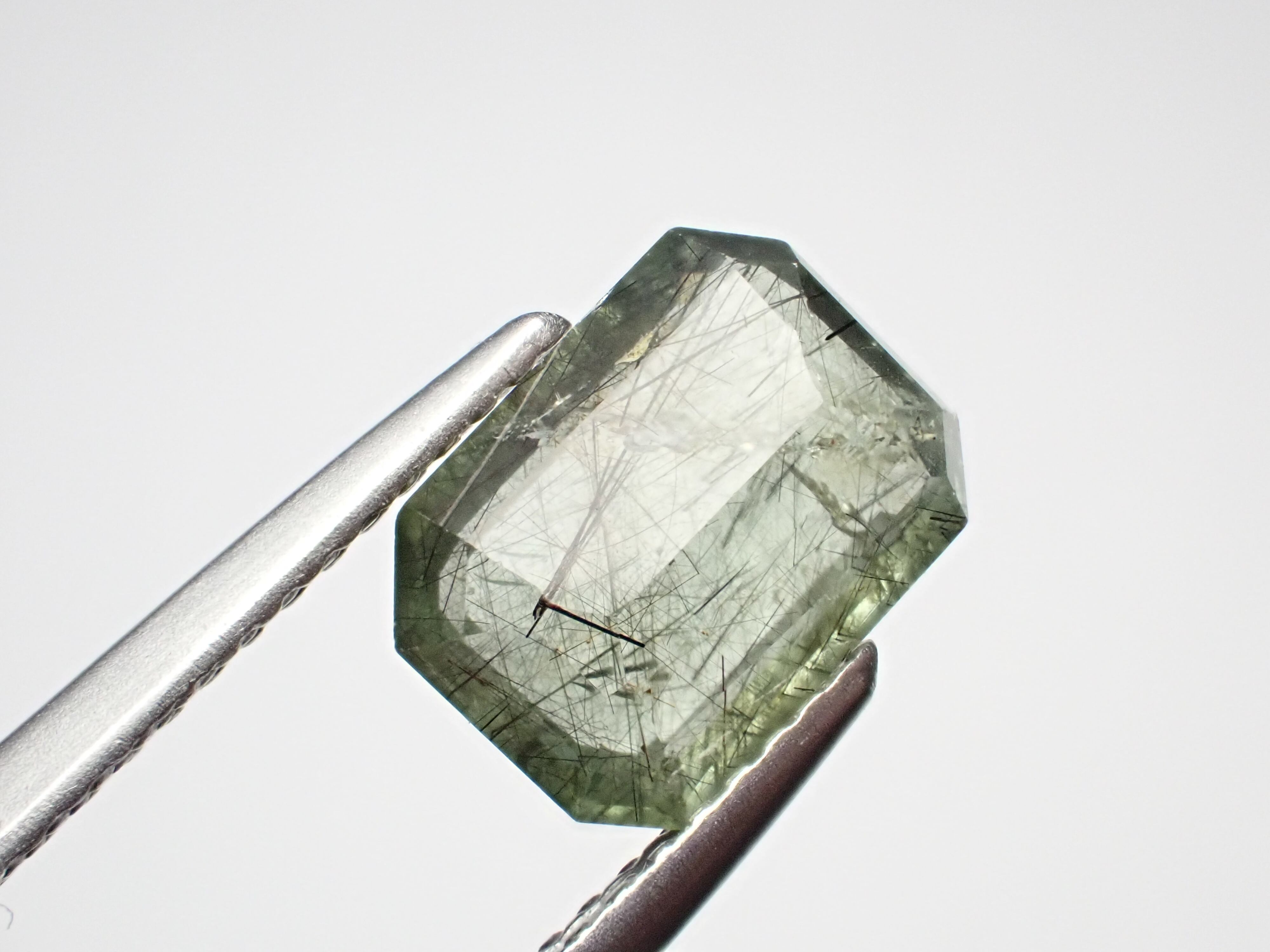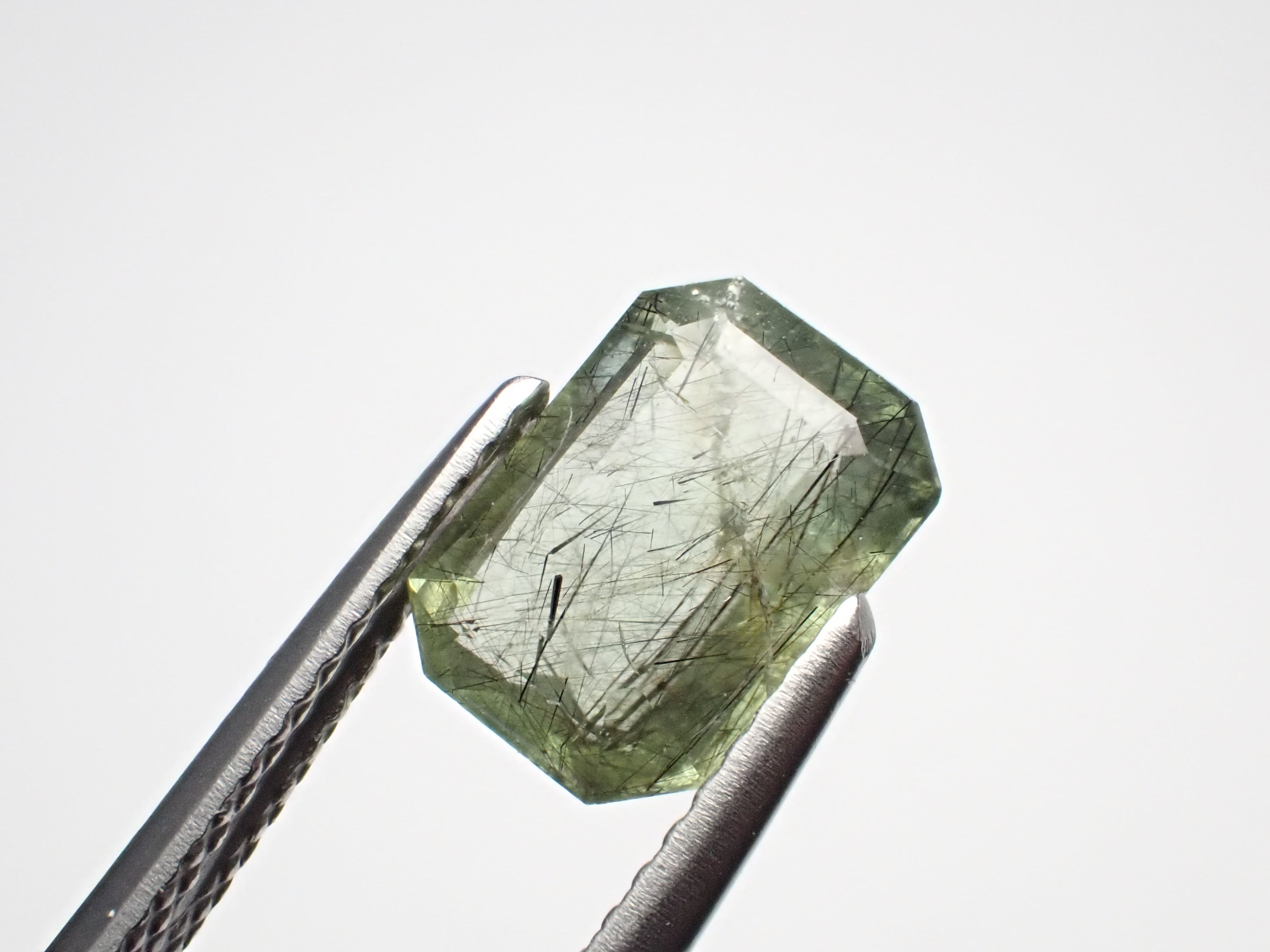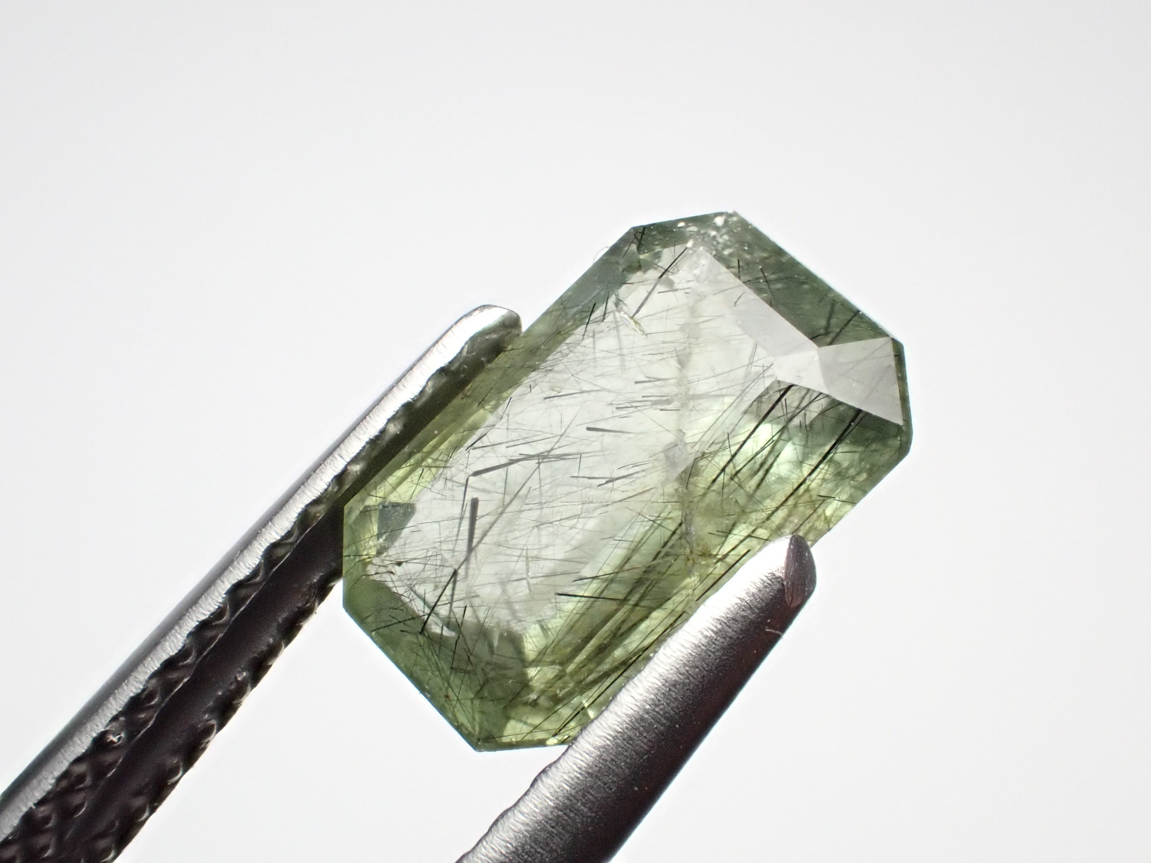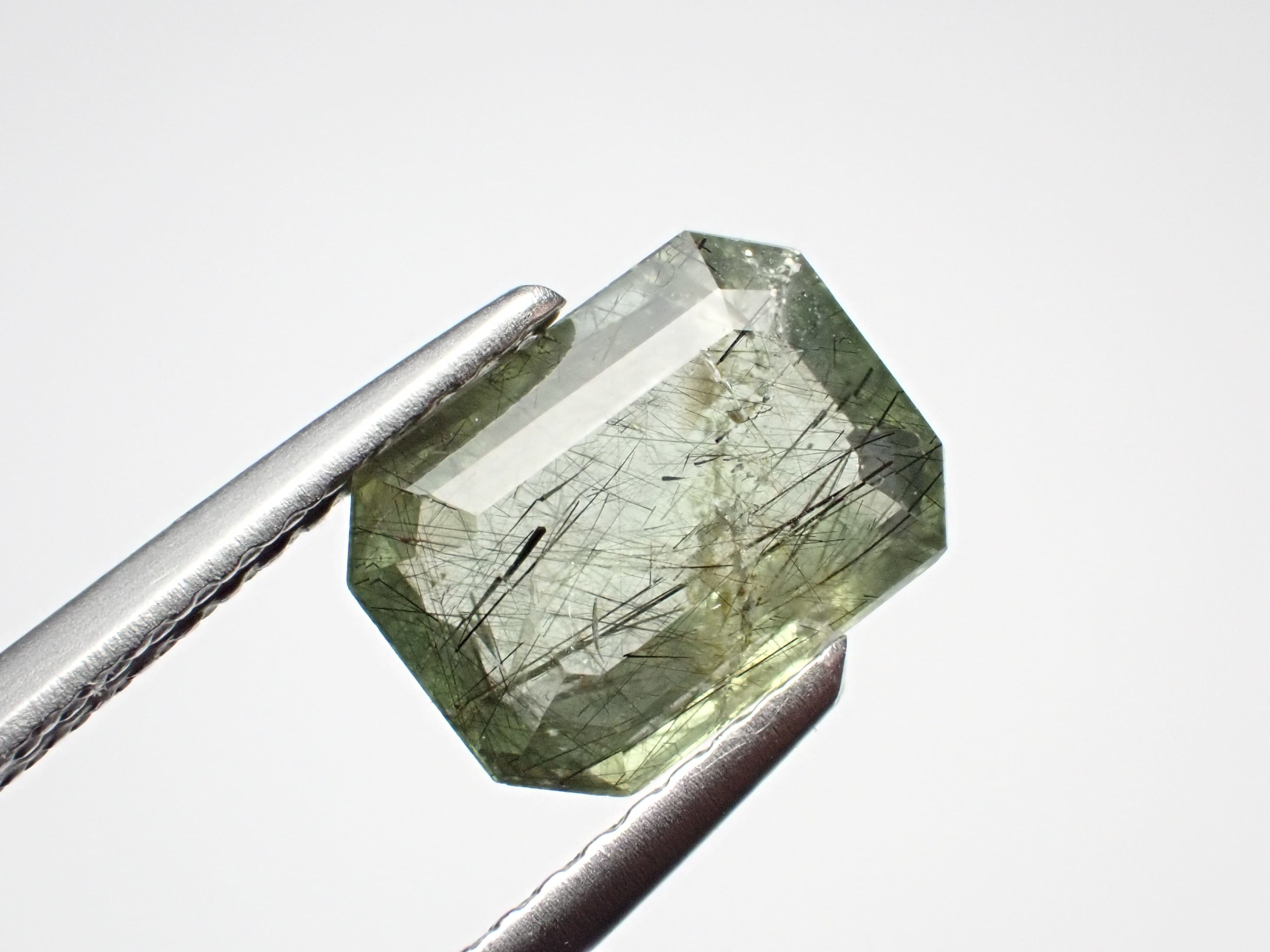 備考:黒い針状の鉱物ルードヴィッヒアイトを内包したペリドットです。
