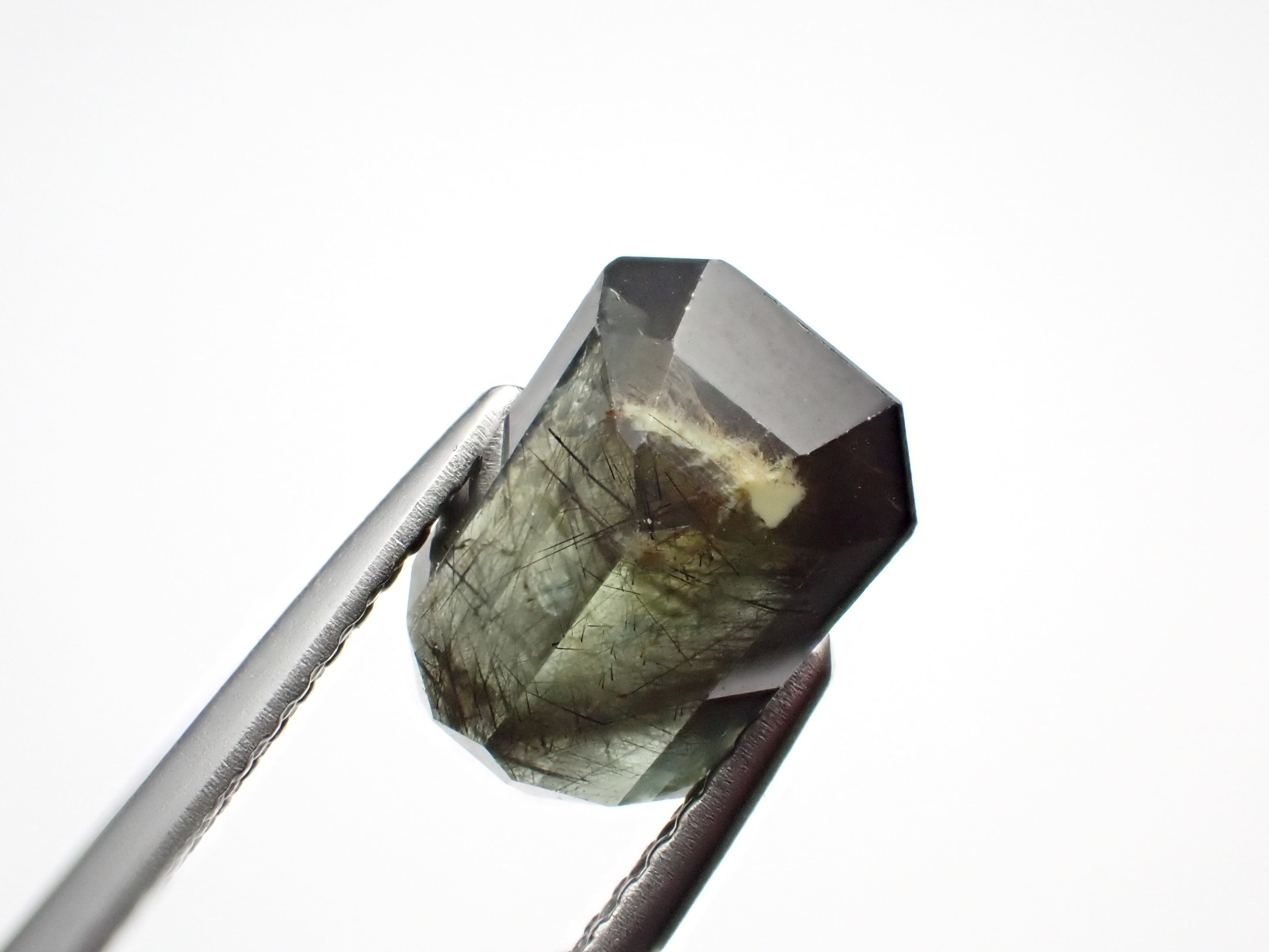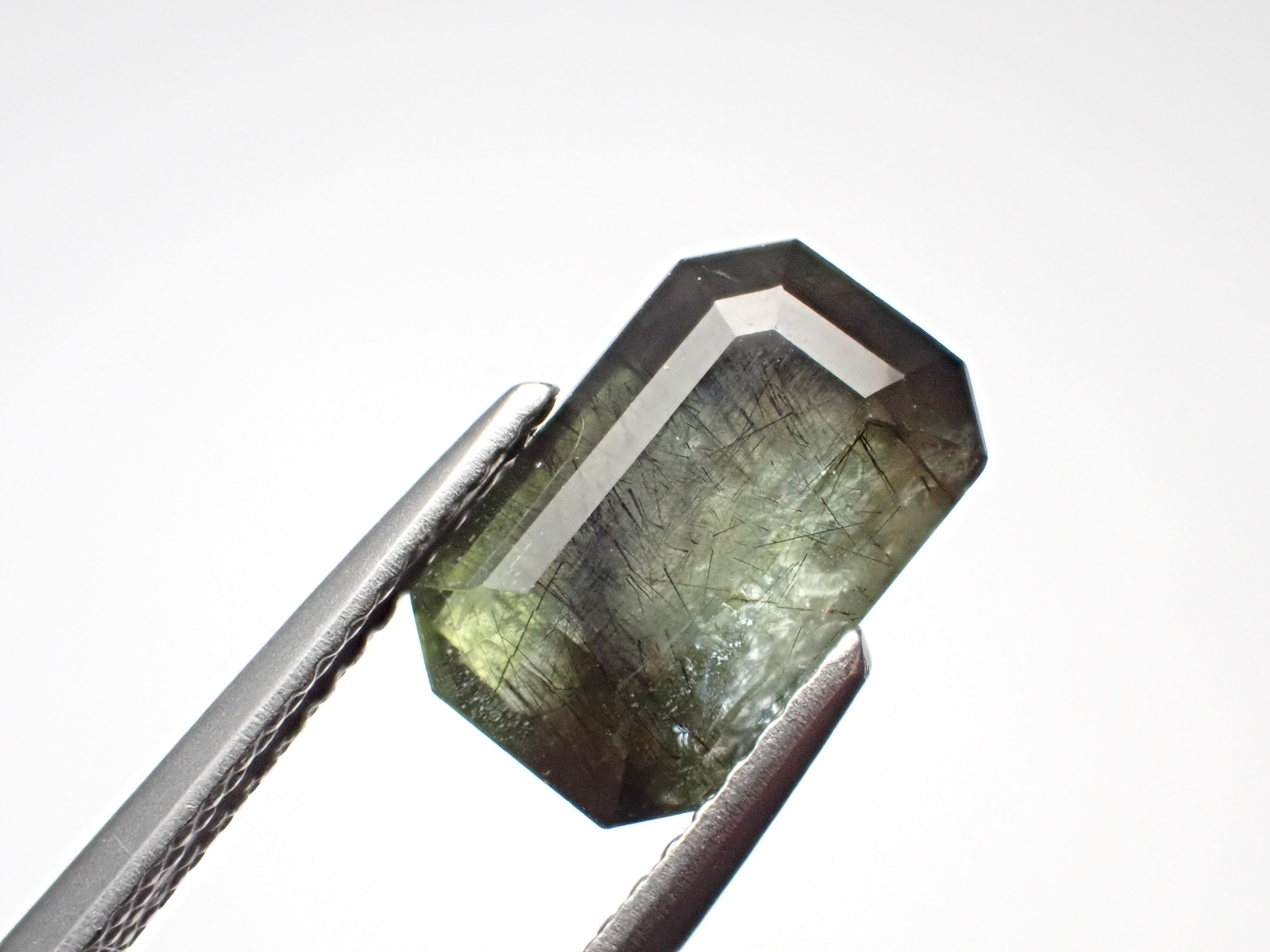 備考:黒い針状の鉱物ルードヴィッヒアイトを内包したペリドットです。