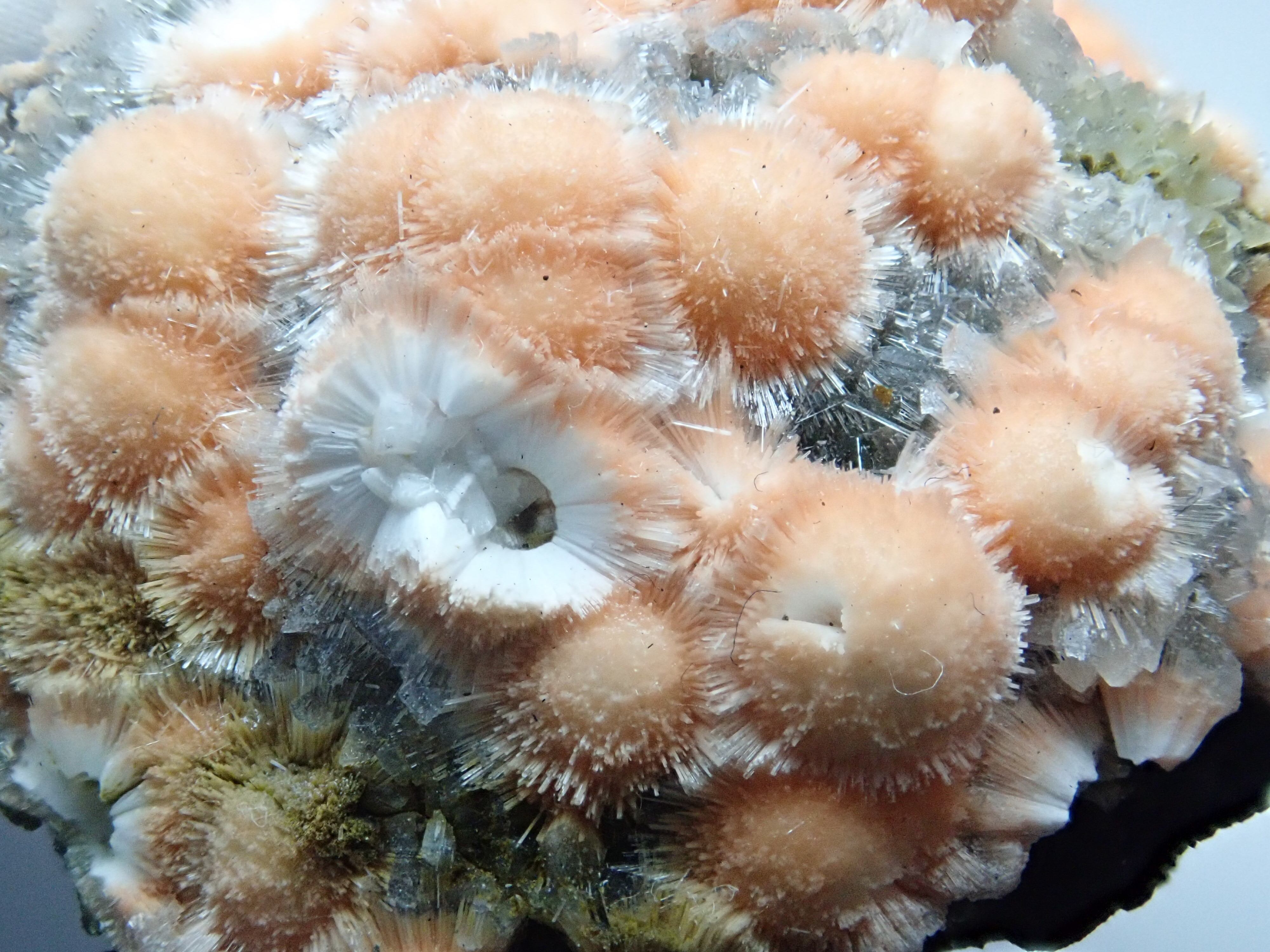 備考:オレンジのトムソナイトに白っぽい毛状メソライトが結晶しています。